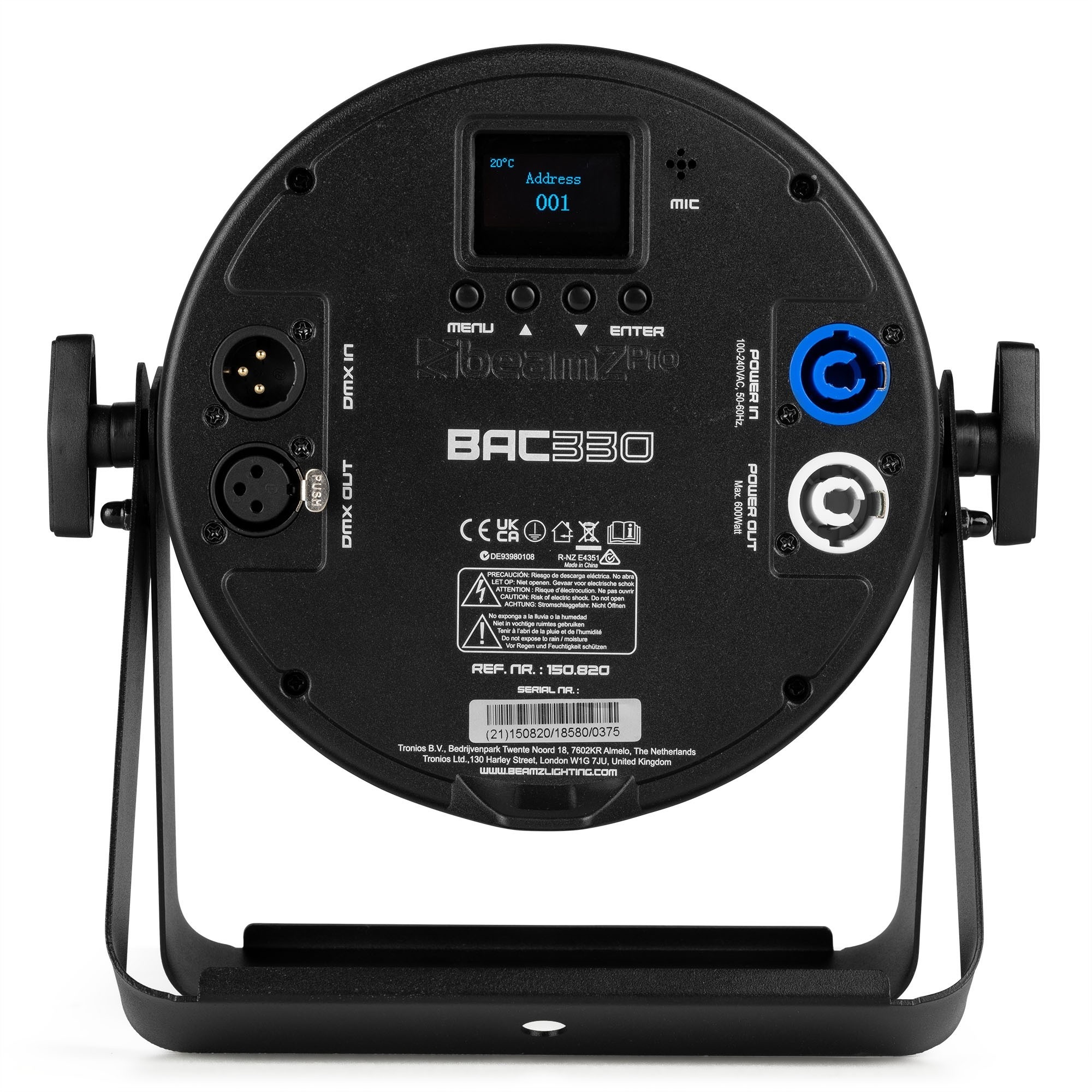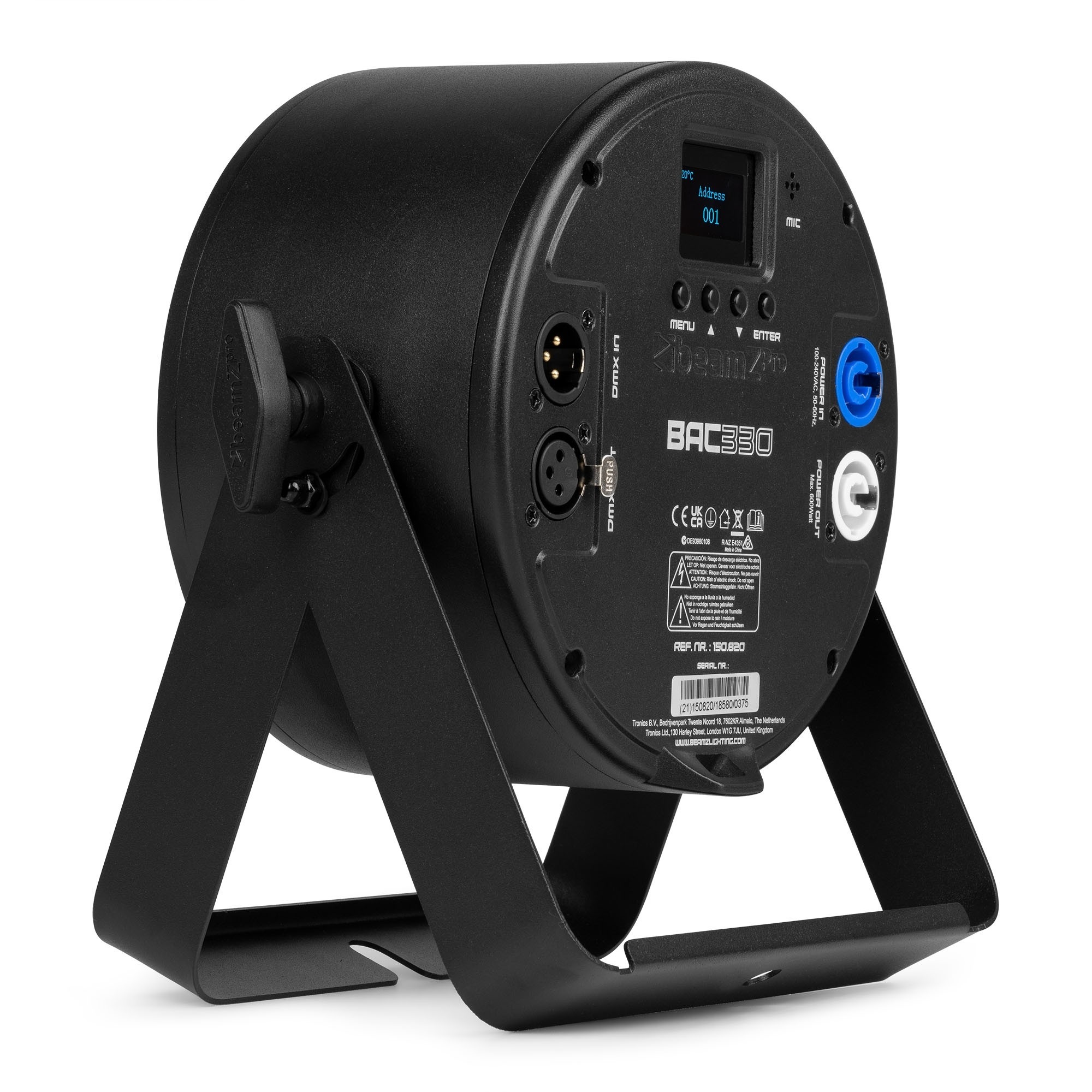 Le BAC330 de BeamZ est un projecteur LED professionnel conçu pour offrir des performances lumineuses exceptionnelles dans un format compact. Doté de 12 LEDs RGBW de 8W intégrées dans un boîtier en aluminium, il garantit un mélange de couleurs riche et dynamique, tout en restant parfaitement silencieux grâce à son système de refroidissement passif. Idéal pour les scènes, les installations fixes ou les prestations mobiles, ce projecteur assure une grande flexibilité grâce à ses multiples modes de contrôle et à ses options de connectivité avancées.