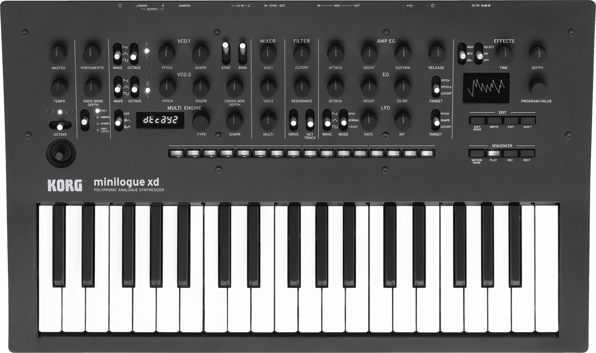 Le Korg Minilogue-XD combine la richesse sonore de l'analogique avec la flexibilité du numérique dans un format compact et intuitif. Véritable outil de création sonore, il permet aussi bien aux débutants qu'aux musiciens confirmés d’explorer des textures sonores profondes, dynamiques et expressives grâce à son moteur hybride unique et à ses effets de haute qualité.