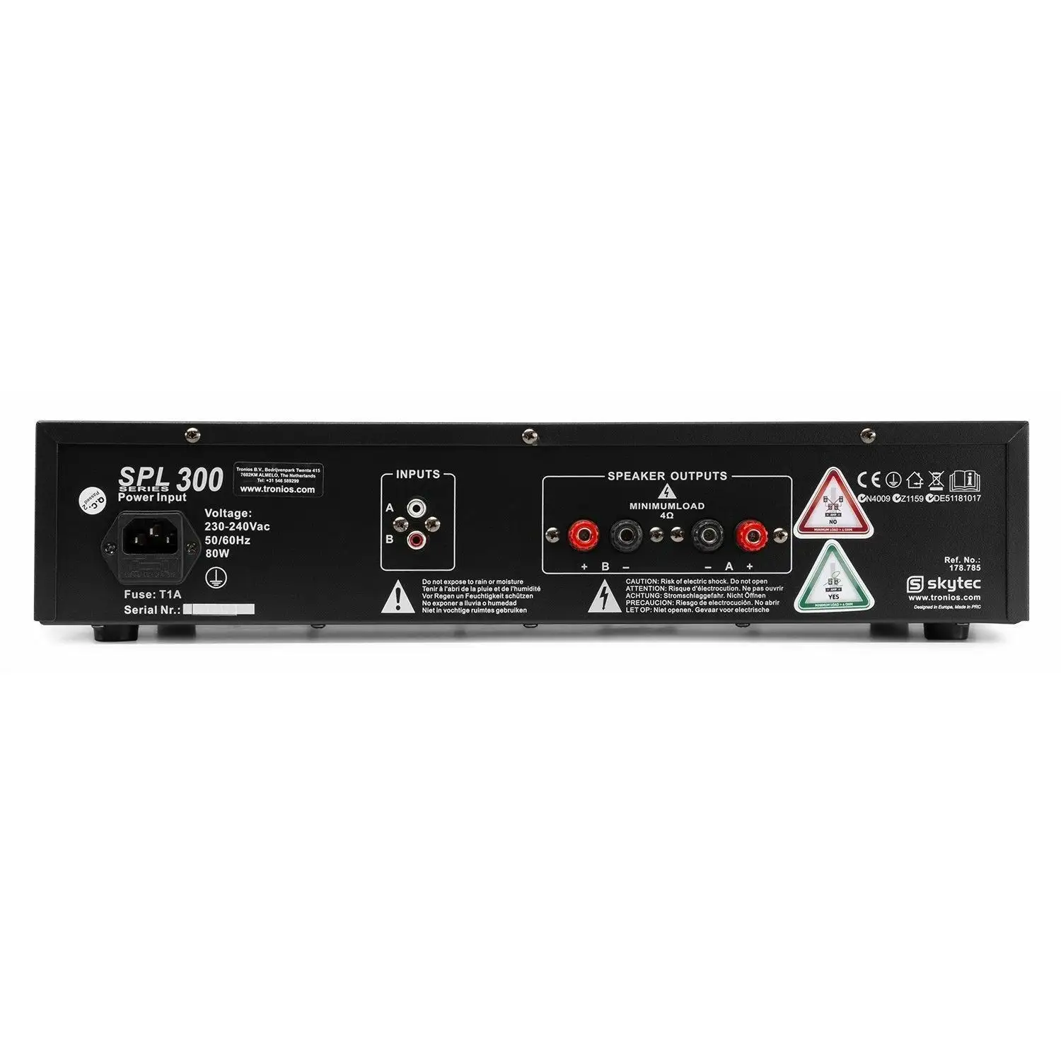 Cet amplificateur SPL 2 x 150 W possède des réglages de volume distincts et un témoin d'écrêtage pour chaque canal. Le limiteur Peak évite les surcharges pour assurer un son parfait. Il utilise la toute dernière technologie des amplificateurs pour garantir puissance et flexibilité d'utilisation. Un appareil idéal pour les DJs débutants. Pour installation en rack 19“.