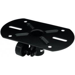 Adaptateur pour pied avec plaque de montage (210 x 118 mm). Version métallique laquée en noir. Plaque avec 4 ouvertures de fixation et 2 trous longs pour recevoir les enceintes.