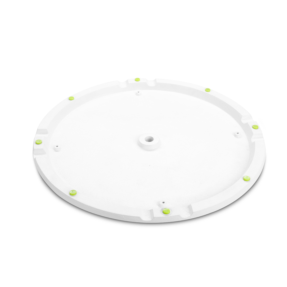 Cette base circulaire plate et massive en fonte moulée accueille des barres de couplage équipées d’un filetage M20 et assure une excellente stabilité, grâce à son poids de 10 kg. Pour améliorer encore la stabilité, un disque de lest de 5 kg est disponible en accessoire (référence GWB123WPB), se fixant facilement sans outil.