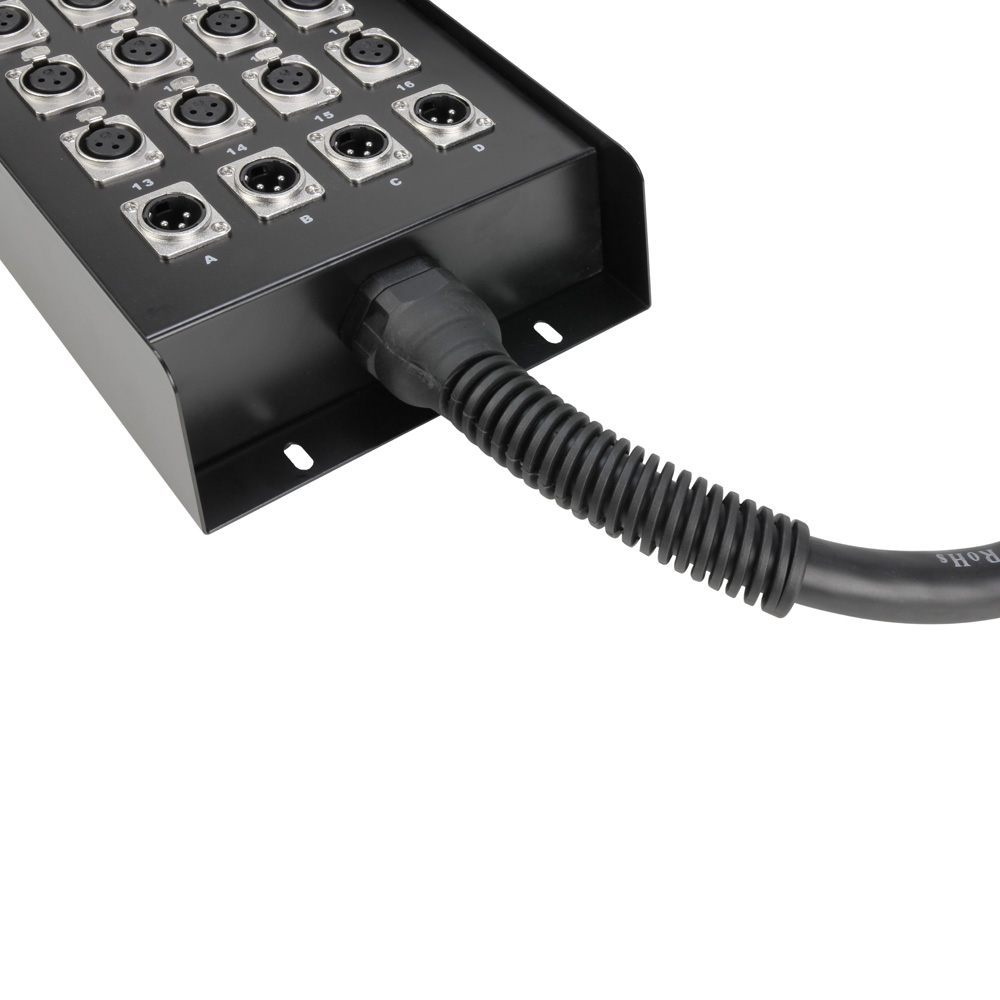 Conçu pour les environnements de scène exigeants, ce câble multipaire de 50 mètres est équipé d’un boîtier robuste en acier thermolaqué noir. Idéal pour les installations audio professionnelles, il offre 20 canaux (16 envois et 4 retours) avec des connecteurs XLR entièrement métalliques de haute qualité. Grâce à sa poignée de transport intégrée et à son système de décharge de traction, il allie performance, fiabilité et praticité.