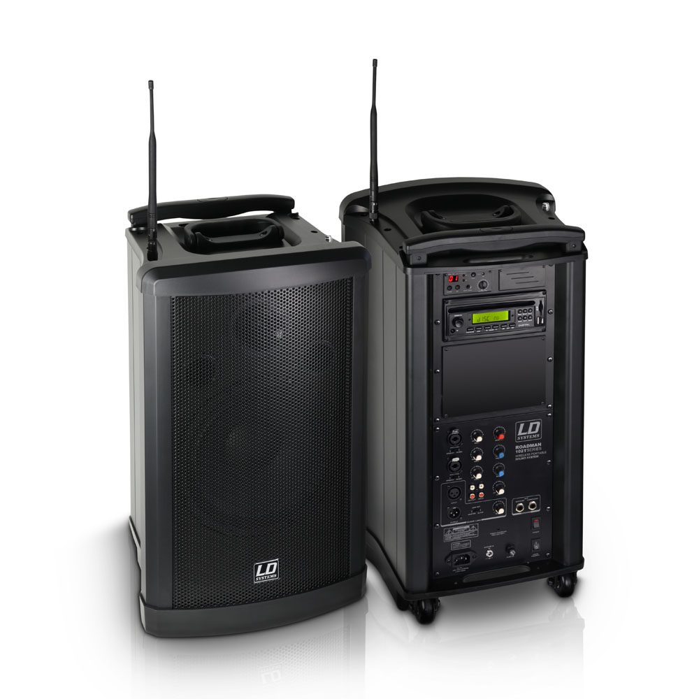 Le Roadman 102B6 est un système sono portable et compact avec batterie intégrée. Ce système polyvalent convient à tous types d'applications: animation, églises, écoles, conférences, présentations. La configuration standard du Roadman comprend un lecteur CD/MP3/USB/SD ainsi qu'un module de microphone sans fil. Récepteur micro sans fil supplémentaire disponible en option