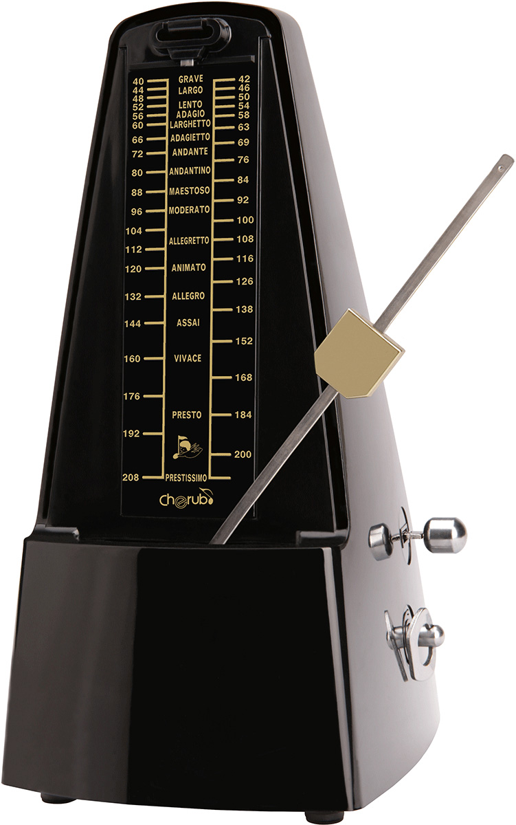 WSM-330-BK CHERUB - Métronome mécanique noir vintage, 40-208 bpm, son classique, réglage p |