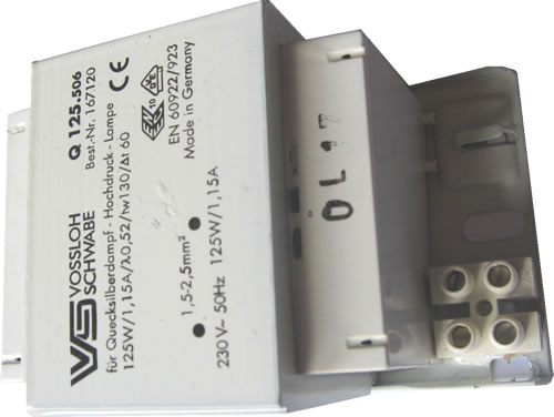 Ballast pour lampe mercure 125W convient aux lampes UV type UV125 remplace OSRAM SB125 230V 1.15A 125W 1040g 107x65x52