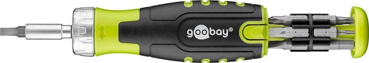 avec 30 mèches : 5x têtes plates : 3 mm, 4 mm, 5 mm, 5 mm, 6 mm 6x cruciformes (Phillips) : PH0, PH1, PH1, PH2, PH2, PH3 4x Pozidriv : PZ0, PZ1, PZ2, PZ3 7x Torx : T10, T15, T20, T25, T27, T30, T35 4x à tête hexagonale : H3, H4, H5, H6 4x à tête carrée : S0, S1, S2, S3 1x adaptateur (25 mm) 1x support magnétique avec 9x noix hexagonales et 1/4 de pouce : 4 mm, 5 mm, 6 mm, 7 mm, 8 mm, 9 mm, 10 mm, 11 mm, 12 mm
