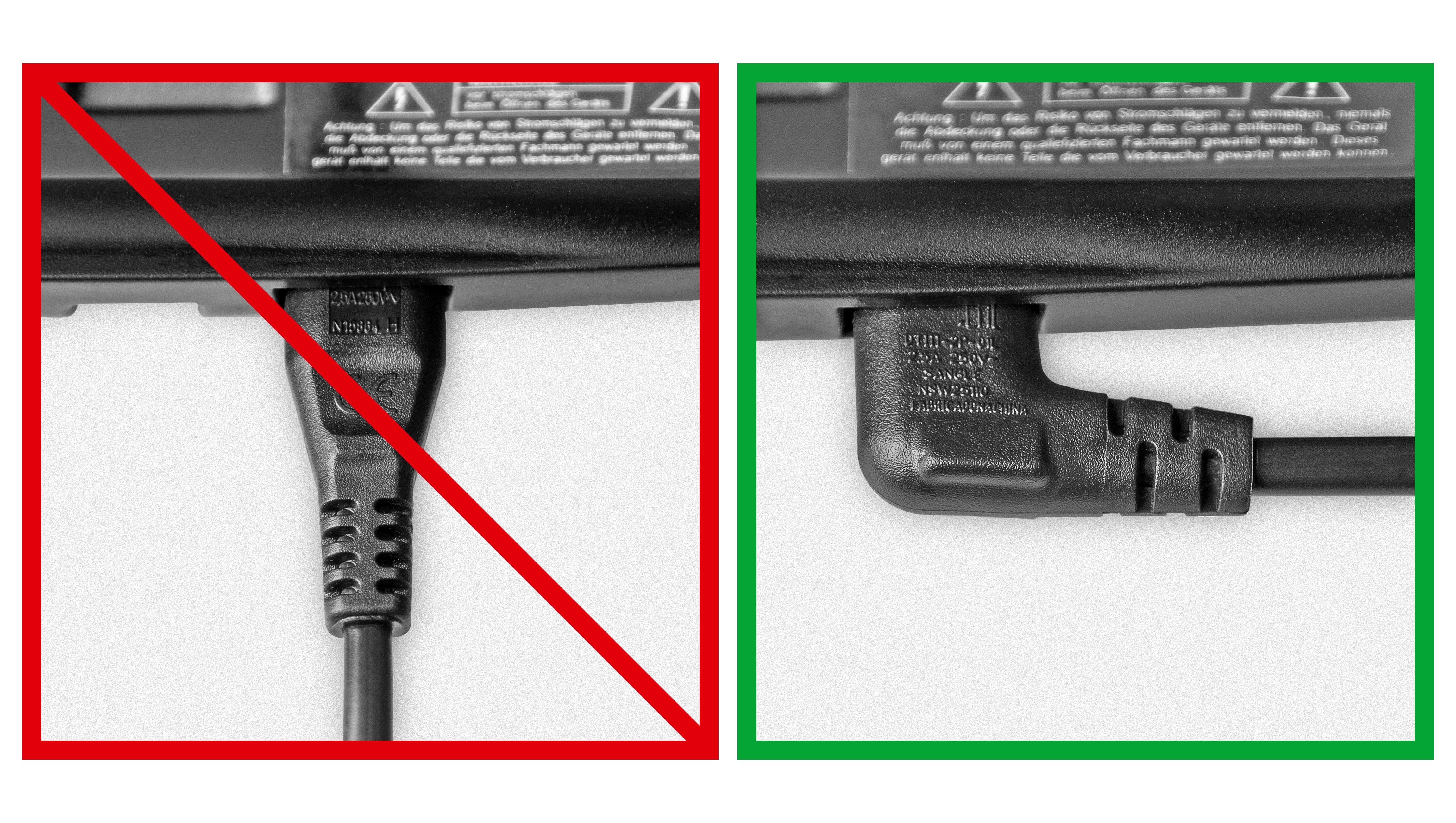 Cordon avec les 2 fiches coudées pour un maximum de gain de place.
