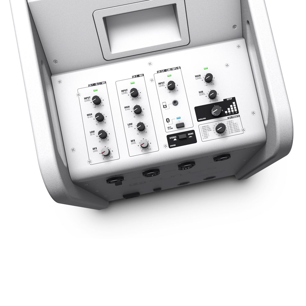 Le caisson de basses 10", de type bass-reflex, héberge un amplificateur en Classe D et assure les fonctions de limiteur, de protection contre les courts-circuits, la surchauffe et la surcharge. Sans oublier un mixeur 4 canaux, équipé de 16 presets d'effets numériques et d'un récepteur Bluetooth®. Ses connecteurs de type Combo et compatibles speakON offrent des possibilités de connexion étendues. Le caisson de basses offre de plus quatre presets système numériques, un puits fileté M20 et trois poignées de transport ergonomiques.