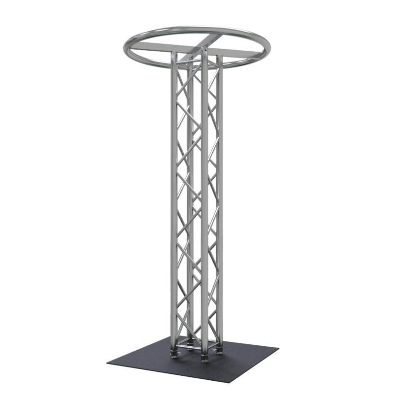 Embase circulaire pour structure carré duratruss équipé de 4 demi manchon pour être inséré au dessus d'un totem en structure de marque duratruss permettant de mettre un ensemble de projecteurs afin de personnalisé votre totem.