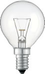 Ampoule E14 incandescente sphérique claire.