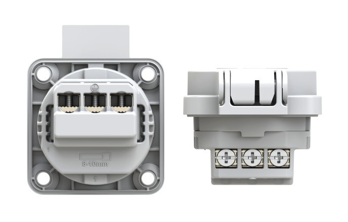Embase femelle NF prise française. entraxe de fixation 38X38 Volet IP44