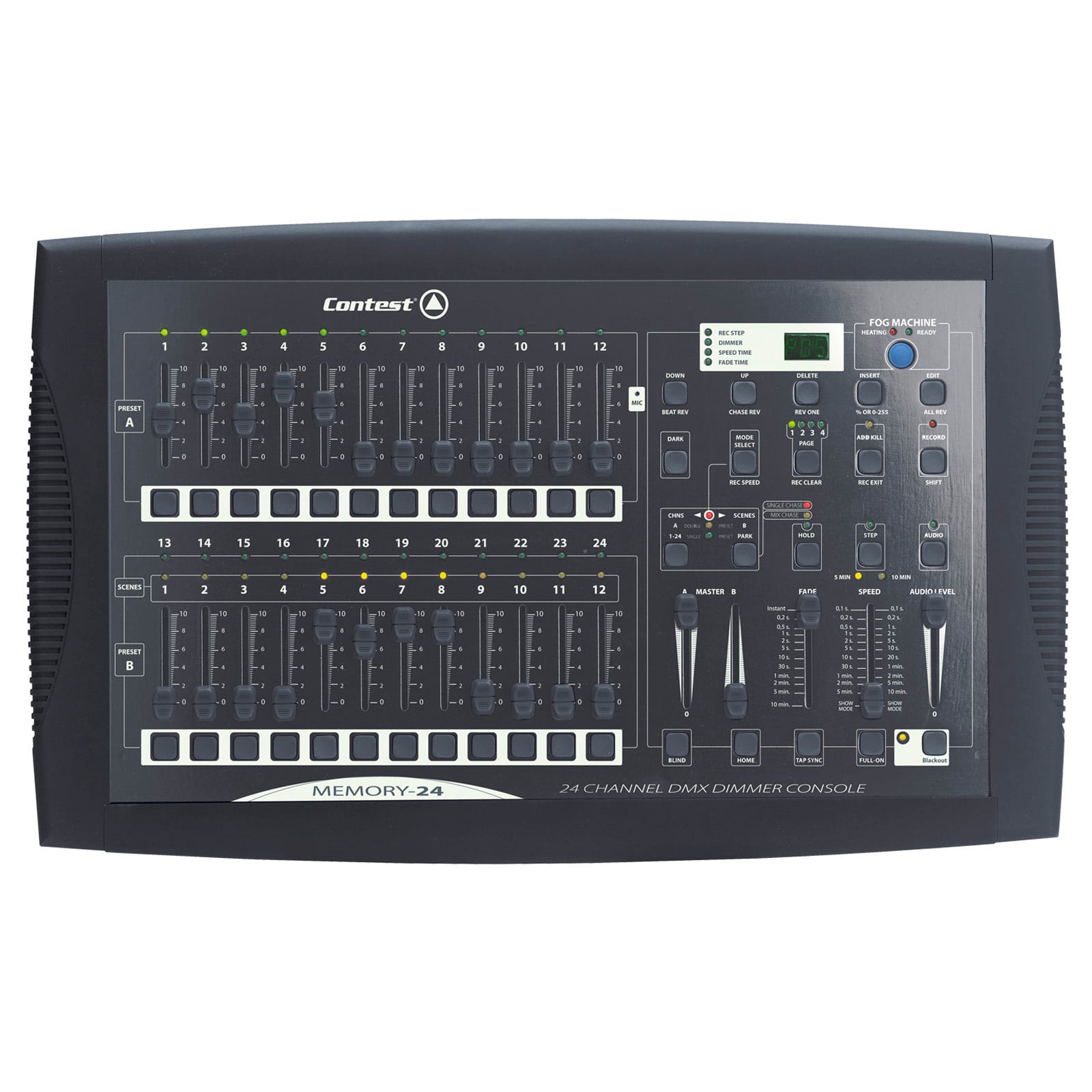 La MEMORY-24 Contest est la solution idéale pour piloter vos blocs de puissance avec précision et simplicité. Que ce soit en mode manuel, synchronisé sur le tempo ou en synchronisation musicale, cette console offre un contrôle total sur votre éclairage scénique.