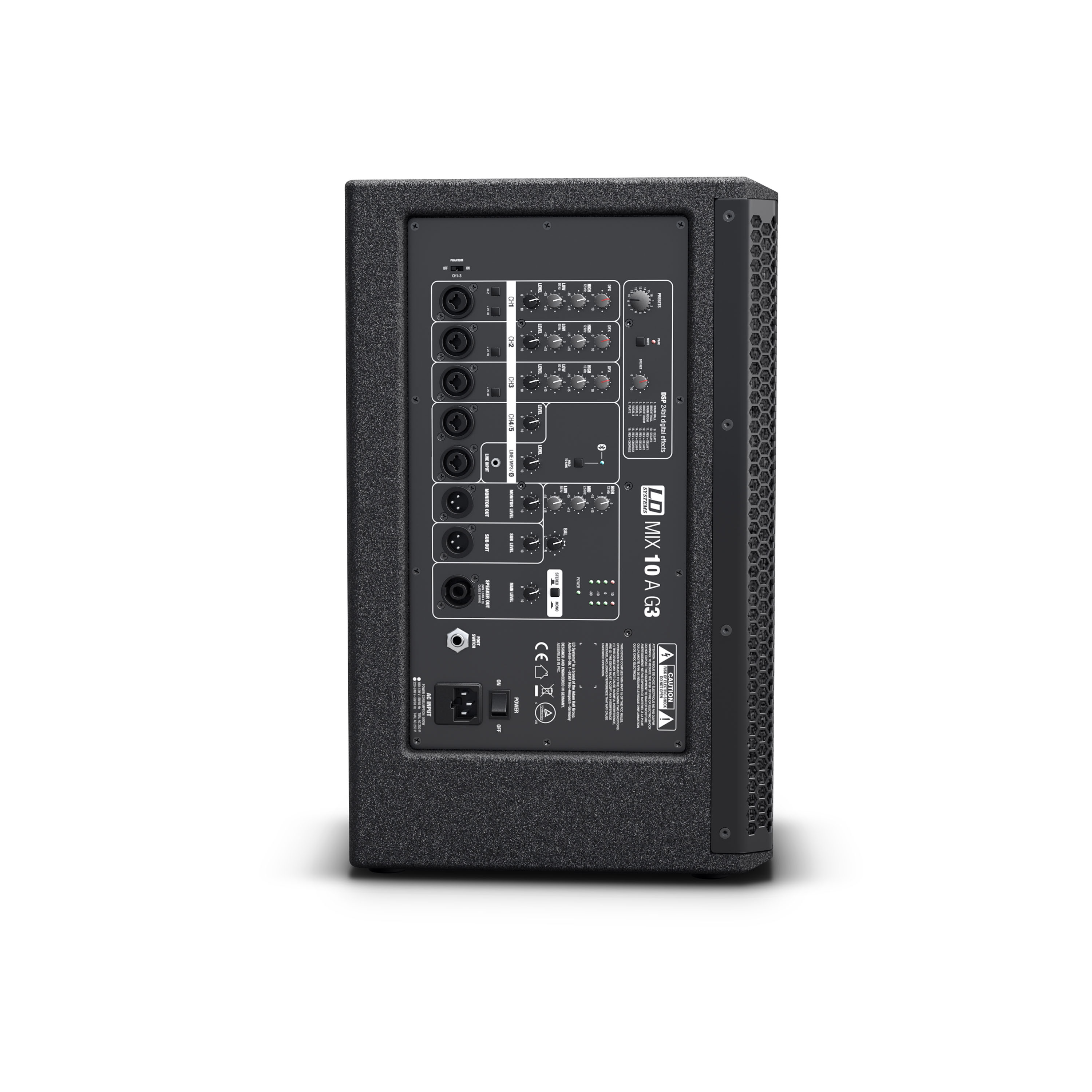 Enceinte amplifiée LD Systems avec table de mixage intégrée. La marque Allemande a conçu cette enceinte pour les petites configurations que ce soit musiciens (difusion ou retour), conférence ou animation. Le LD MIX 10 A G3 actif intègre un mélangeur à 7 canaux et une amplification de classe D avec une puissance de crête de 2 x 400 watts. L'enceinte bass reflex compacte dispose d'un woofer de 10 "et d'un pilote Celestion HF de 1", d'une réponse en fréquence de 65 Hz à 20 kHz et d'une dispersion de 90 ° x 60 ° produisant un son clair et précis.