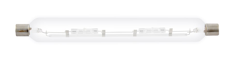 Lampe halogène tubulaire double culot, tension réseau.