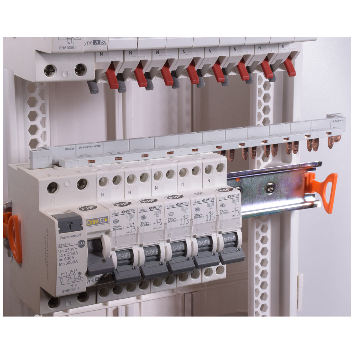 Peigne ou barre de pontage phase neutre universelle pour dijoncteur et différentiel OHMTEC