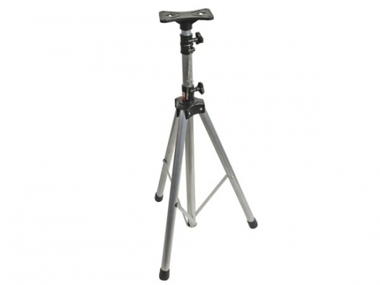 pied d enceinte, finition métal gris, pieds tripodes pliables, tube pour embase 35mm, réglage empattement pieds par molette de serrage