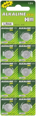 tension nom.: 1.5V capacité typ.: 125mAh dimensions: Ø11.6 x 5.4mm IEC: LR44 réf.: A76, AG13, SR44, V357 piles par blister: 10
