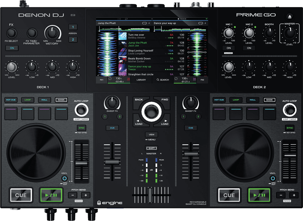 Dans la lignée directe du célèbre système DJ autonome tout-en-un Prime 4, le Prime Go reprend les bases posées par son prédécesseur tout en jouant la carte de la mobilité et de la compacité. Avec sa batterie au lithium-ion lui conférant une autonomie de 4 heures et son format compact d’à peine plus de 40 cm de long sur 28 cm de haut, le Prime Go sera l’allié incontournable de tout DJ à la recherche d’une solution mobile, désireux de se libérer de la contrainte d’une alimentation électrique externe.