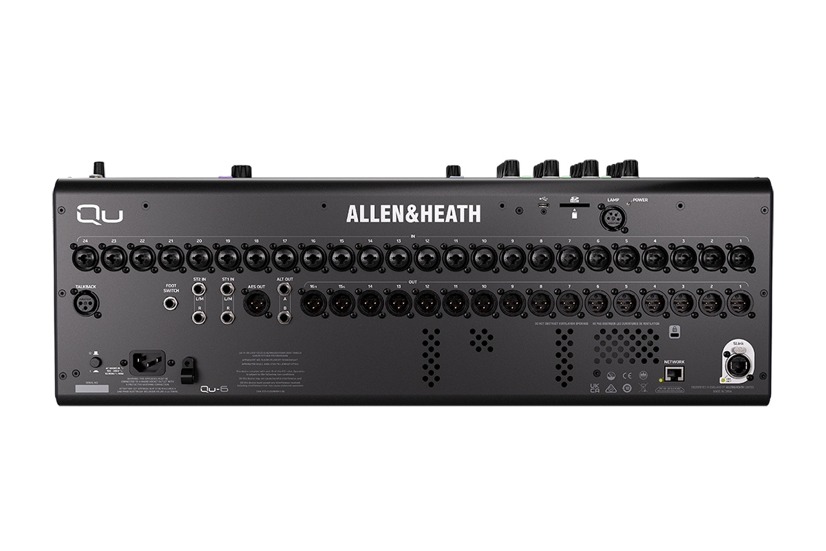 La QU-6 d'Allen & Heath redéfinit les standards des consoles de mixage numériques au format intermédiaire. Grâce à son puissant processeur FPGA XCVI cadencé à 96 kHz, cette console compacte offre une qualité audio exceptionnelle et un traitement DEEP Processing intégré, jusque-là réservé aux modèles haut de gamme. Dotée de 25 faders motorisés, d’un écran tactile de 7 pouces et d’outils intelligents d’aide au mixage, la QU-6 est conçue pour les ingénieurs du son exigeants à la recherche d’un outil complet, intuitif et évolutif.