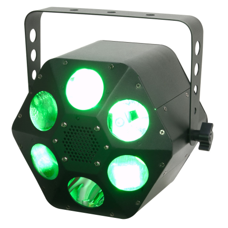 - Effet Moonflower ultra puissant doté d’une LED QUAD 4-en-15rouge, vert, bleu et blanc) de 32W et produisant des faisceaux très nets à changement de couleur