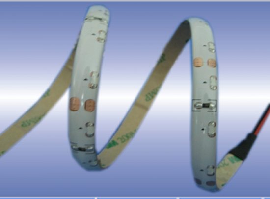 Ruban souple sur bande adhésive 60 LEDs/m de type 335 à éclairage lattéral. Ce ruban éclaire sur sa tranche il est recoupable toutes les 3 leds (5cm environ).