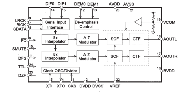 Convertisseur numérique analogique AK4321VF DAC 96KHz 20Bit 24 pin VSOP |
