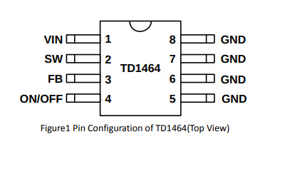 Driver PWM DC DC converter 5V TD1464P5 9-40Vdc 1.5A SOP8