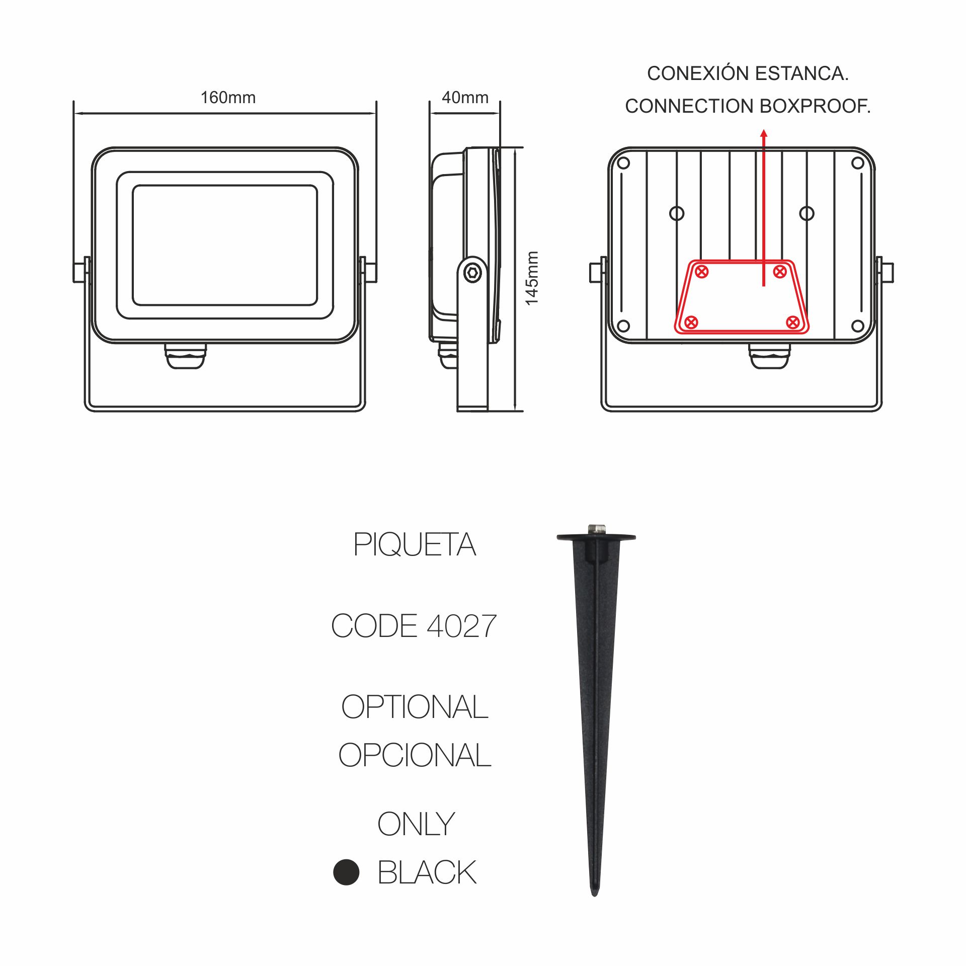 Projecteur Led noir IP65 Beneito Faure SKY 30W blanc chaud 3000K 110°