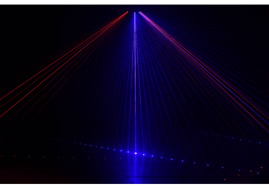 - Lasers : 4 lasers (2 rouges 100mW 650nm, 1 vert 60mW 520nm, 1 bleu 100mW 450nm)