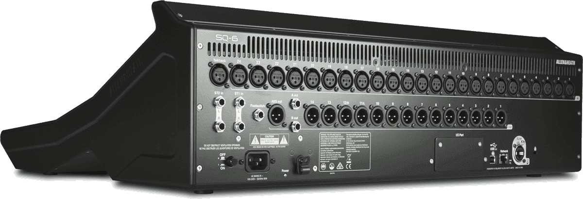 - Sorties (autres) : footswitch, USB, RJ45, 3 matrices stéréo (XLR), numérique AES, port pour cartes d'E/S optionnelles, SLink (etherCon)