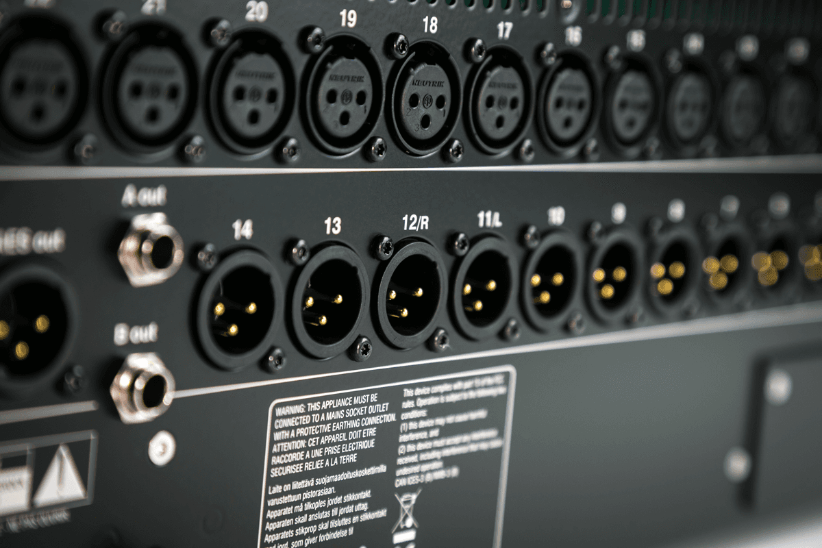 - Sorties principales : locales : 14 x XLR (dont LR) + 2 x jack symétriques