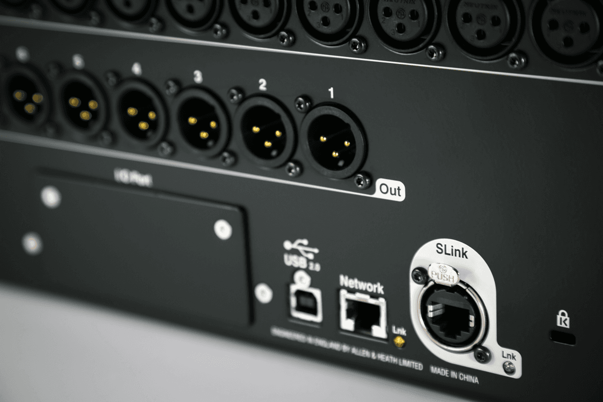 - Connecteur etherCon SLink : audio déporté via protocoles dSnake, DX ou GigaACE (64x64)