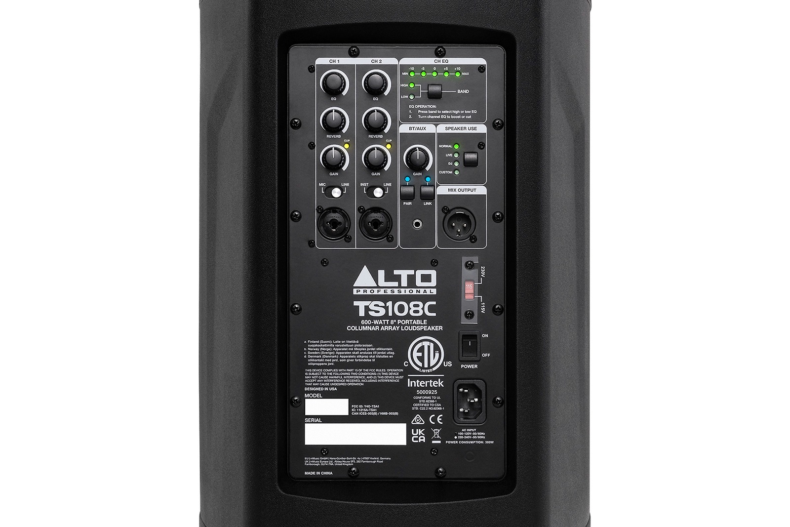 La TS108C Alto est une enceinte colonne amplifiée tout-en-un qui allie puissance sonore, flexibilité d’utilisation et design modulaire. Conçue pour les musiciens, DJs et professionnels de l’événementiel, elle offre une restitution audio claire et homogène grâce à son système 2 voies intégrant un caisson de basses de 8" et une colonne équipée de 6 haut-parleurs. Elle intègre un mixeur 3 canaux avec effets et une connectivité Bluetooth moderne pour une utilisation sans contraintes.